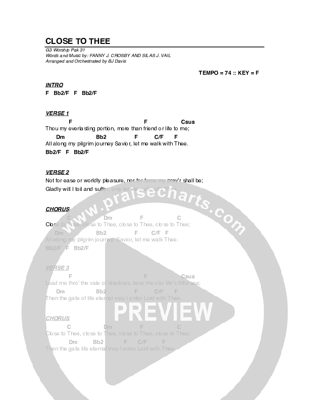 Download the PDF Chord Charts for Close To Thee by G3 Worship, from the album Hymns Volume 2.