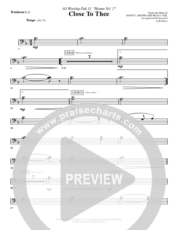 Close To Thee Trombone Sheet Music PDF (G3 Worship)