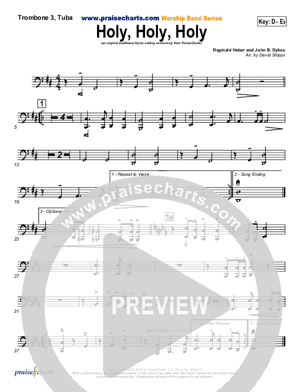 Holy Holy Holy Trombone/Tuba Sheet Music PDF (PraiseCharts / Traditional Hymn)