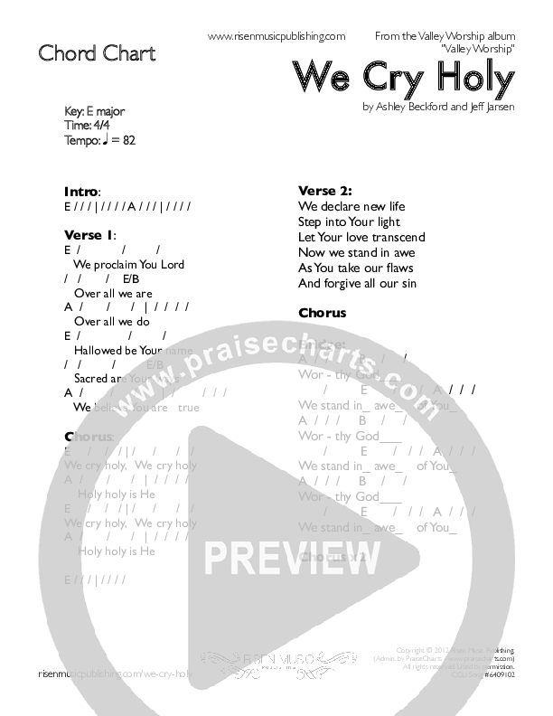 Download the PDF Chord Charts for We Cry Holy by Valley Worship, from the album Valley Worship.