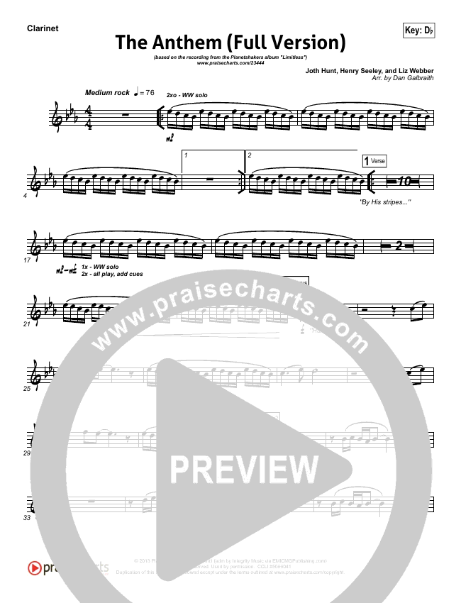 Download the Orchestration wind parts for The Anthem (Full Version) (Live) by Planetshakers, from the album Limitless. This song was arranged by Daniel Galbraith in the key of Bb, C, Db, Eb, G.