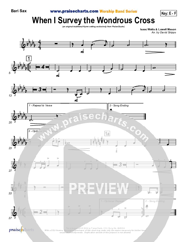 When I Survey The Wondrous Cross Bari Sax Sheet Music PDF (PraiseCharts / Traditional Hymn)