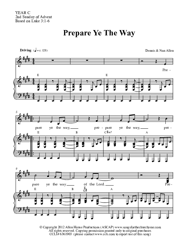 Prepare Ye The Way Piano/Vocal (Dennis Allen / Nan Allen)