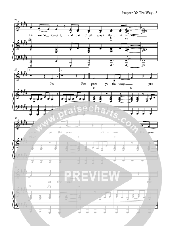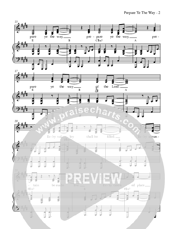 Chorus Prepare ye the way prepare ye the way, prepare ye the way of the Lord Verse Ev’ry valley shall be filled ev’ry mountain be made low Ev’ry crooked place be made straight, and the rough ways shall be smooth Ending Prepare ye the way of the Lord...