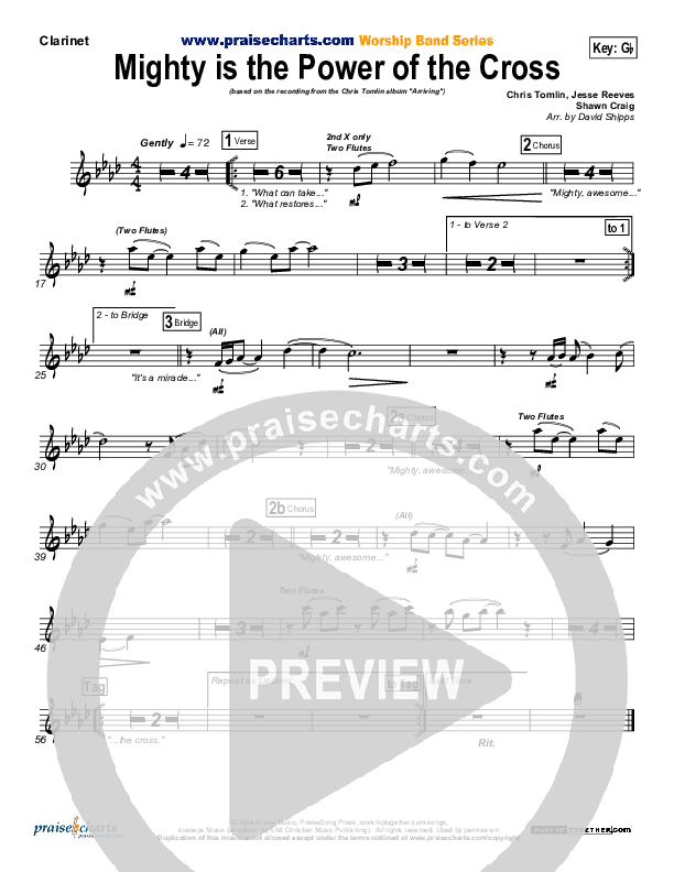 Download the Orchestration for Mighty Is The Power Of The Cross by Chris Tomlin, from the album Arriving. This song was arranged by David Shipps in the key of E, Gb.