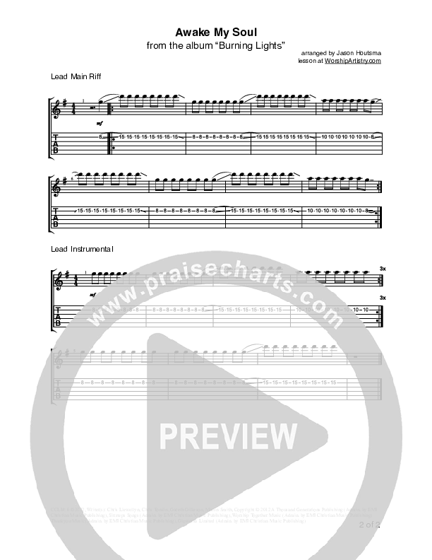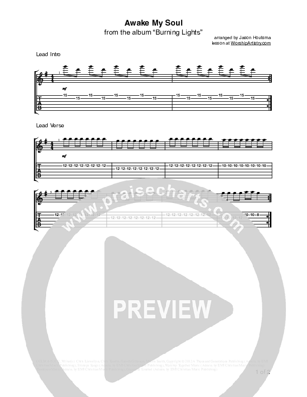 Download the Guitar Tab for Awake My Soul by Chris Tomlin, from the album Burning Lights. This song was arranged by Joel Mott in the key of F, G.