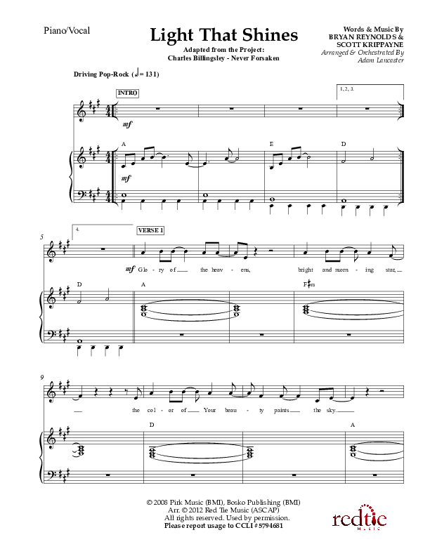 Download the sheet music for Light That Shines by Charles Billingsley / Red Tie Music, from the album Never Forsaken.