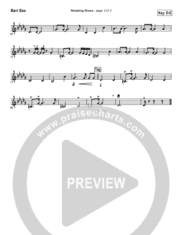 Amazing Grace Bari Sax Sheet Music PDF (PraiseCharts Band / Arr. Daniel Galbraith)