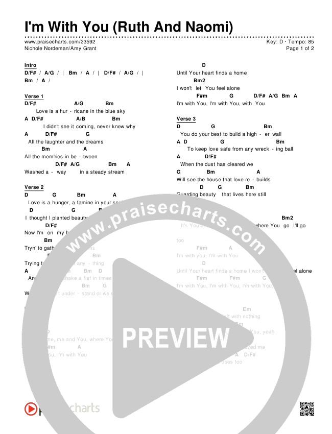 I'm With You (Ruth And Naomi) Chords PDF (Nichole Nordeman / Amy Grant)