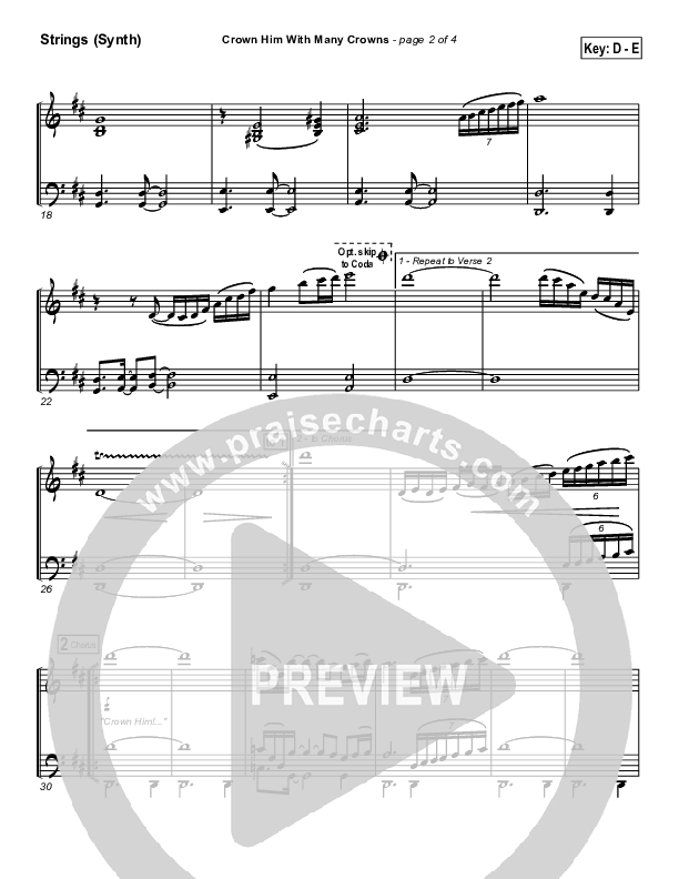 Download the Orchestration for Crown Him With Many Crowns by PraiseCharts Band / Arr. Daniel Galbraith, from the album PraiseHymns (Vol. 1). This song was arranged by Daniel Galbraith in the key of C, D.