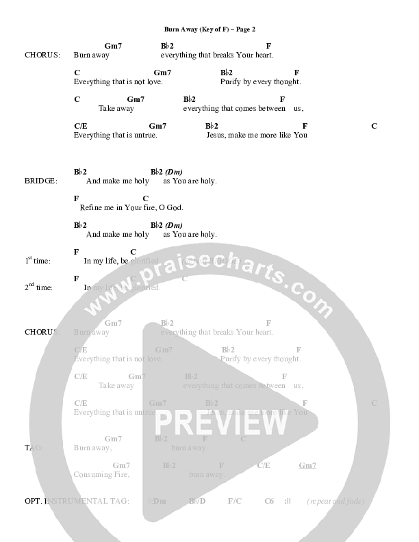 Download the PDF Chord Charts for Burn Away by Meredith Andrews, from the album Worth It All.