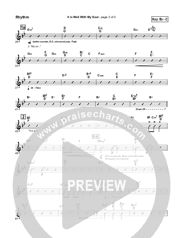 Download the Rhythm Chart for It Is Well With My Soul by PraiseCharts Band / Arr. John Wasson, from the album PraiseHymns (Vol. 1). This song was arranged by John Wasson in the key of Bb, C.