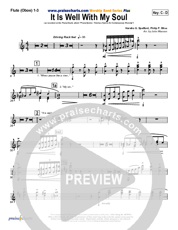 Download the Orchestration wind parts for It Is Well With My Soul by PraiseCharts Band / Arr. John Wasson, from the album PraiseHymns (Vol. 1). This song was arranged by John Wasson in the key of Bb, C.