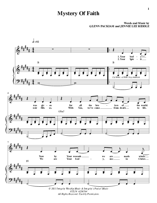 Download the sheet music for Mystery Of Faith by Glenn Packiam, from the album The Mystery Of Faith. This song was arranged by Integrity Music in the key of B.