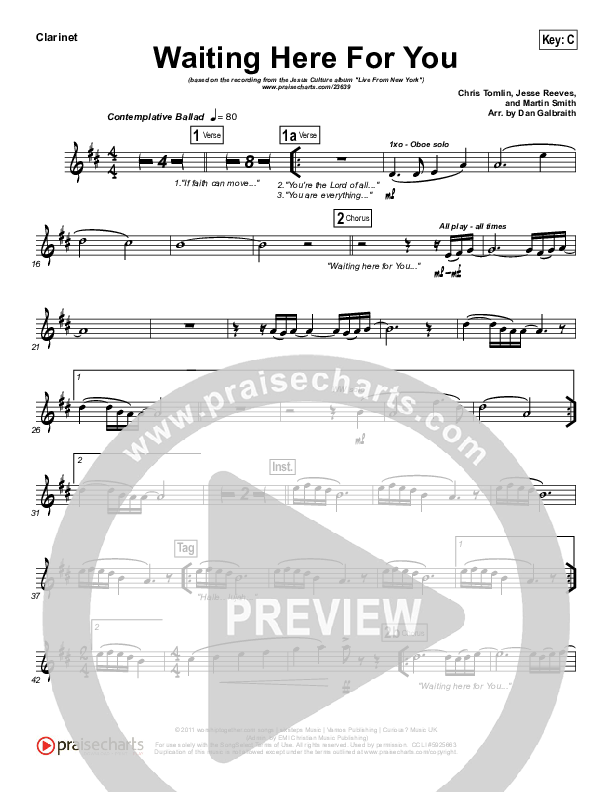 Download the Orchestration for Waiting Here For You by Martin Smith / Jesus Culture, from the album Live From New York (with Martin Smith). This song was arranged by Daniel Galbraith in the key of C, D.