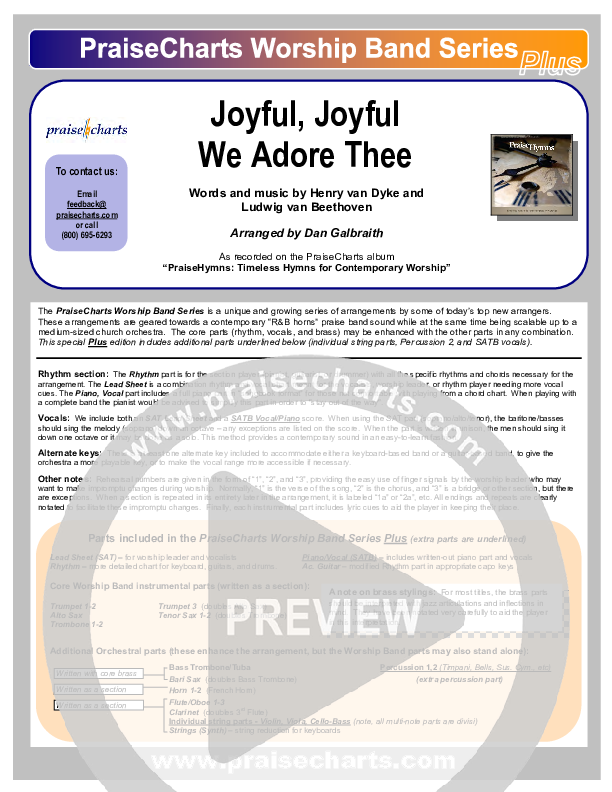 Joyful Joyful We Adore Thee Orchestration (PraiseCharts Band / Arr. Daniel Galbraith)
