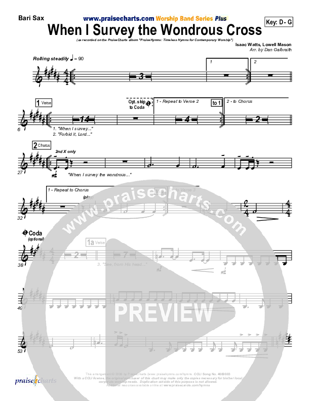 When I Survey The Wondrous Cross Bari Sax Sheet Music PDF (PraiseCharts Band / Kari Jobe / Arr. Daniel Galbraith)