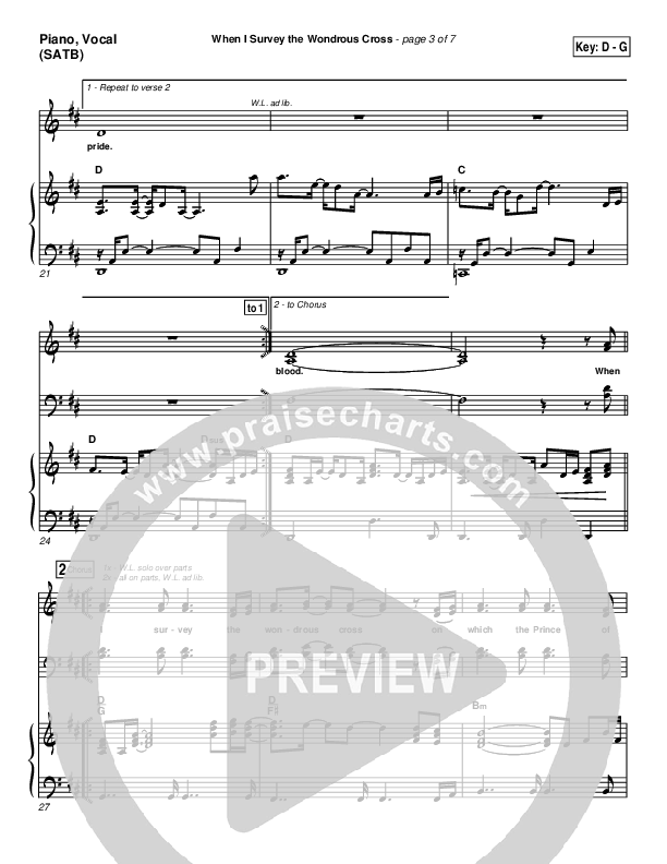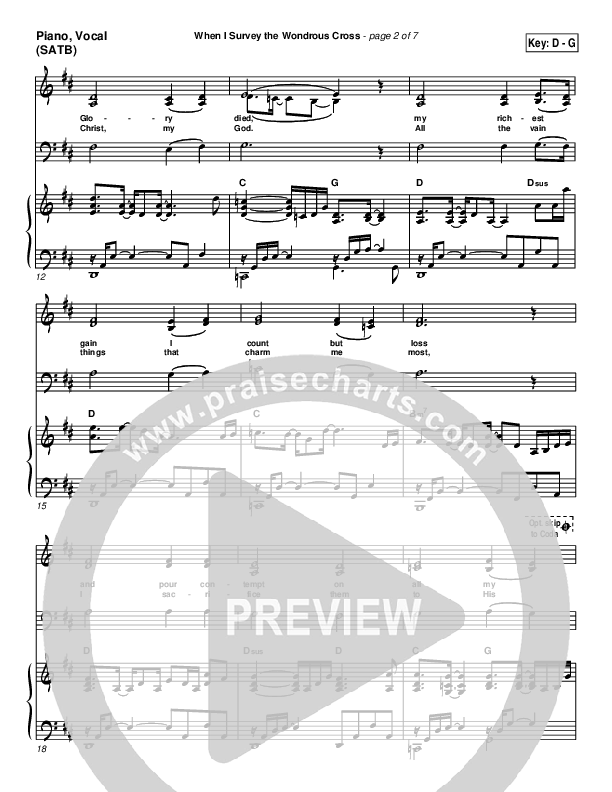 Download the sheet music for When I Survey The Wondrous Cross by PraiseCharts Band / Kari Jobe / Arr. Daniel Galbraith, from the album PraiseHymns (Vol. 1). This song was arranged by Daniel Galbraith in the key of D, E.
