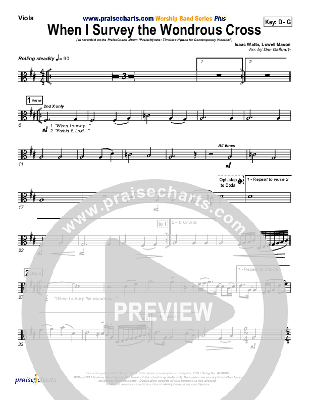 When I Survey The Wondrous Cross Viola Sheet Music PDF (PraiseCharts Band / Kari Jobe / Arr. Daniel Galbraith)