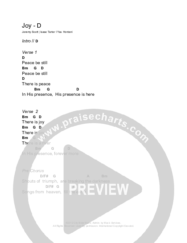 Download the PDF Chord Charts for Joy by Bridgecity, from the album Bridgecity.