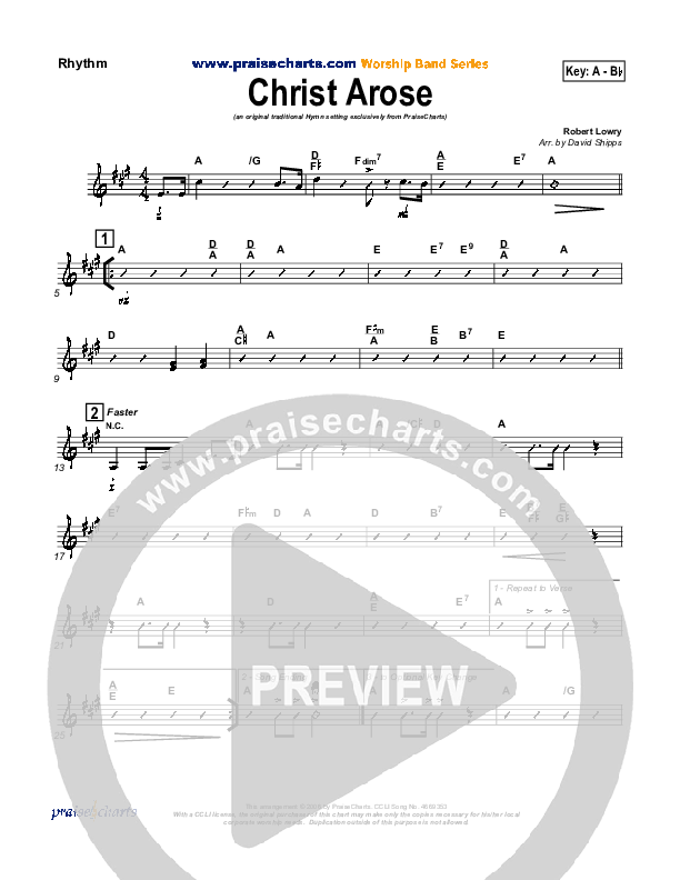 Download the Rhythm Chart for Christ Arose by PraiseCharts / Traditional Hymn, from the album Traditional Hymns Collection. This song was arranged by David Shipps in the key of A, G.