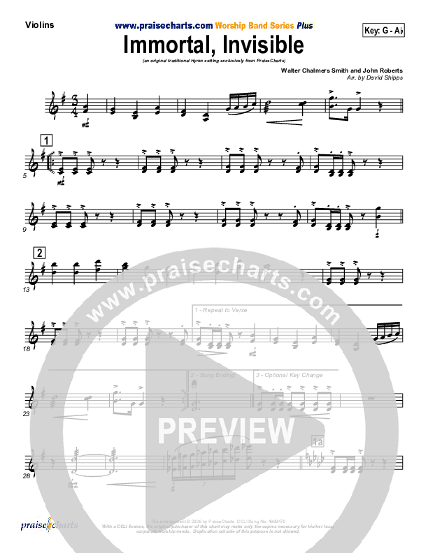 Download the Orchestration string parts for Immortal Invisible by Traditional Hymn / PraiseCharts, from the album Traditional Hymns Collection. This song was arranged by David Shipps in the key of G.