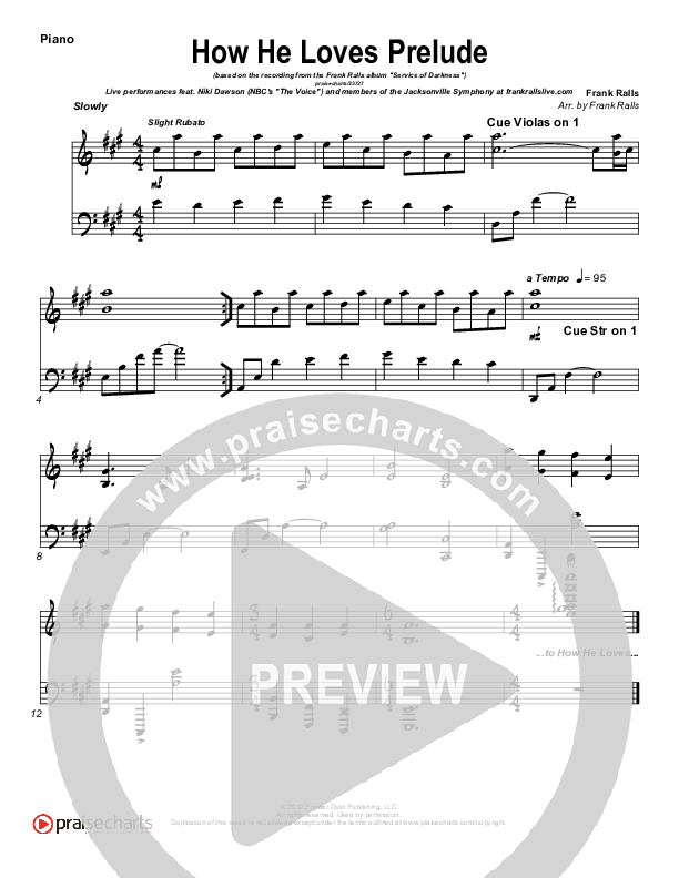 Download the Orchestration for How He Loves by Frank Ralls, from the album Service Of Darkness. This song was arranged by Frank Ralls in the key of A.