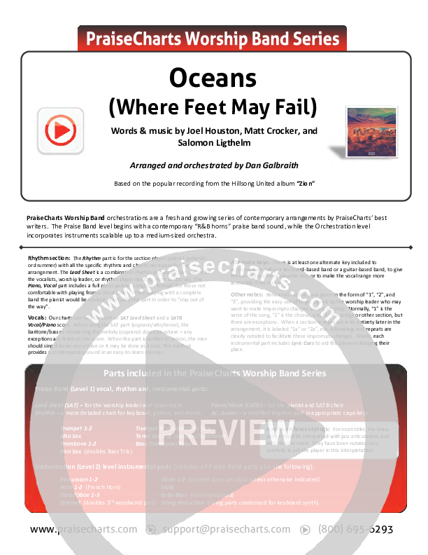 Download the Orchestration for Oceans (Where Feet May Fail) by Hillsong UNITED / TAYA, from the album Zion (Deluxe Edition). This song was arranged by Daniel Galbraith in the key of C, D, Db, E, Eb, F.