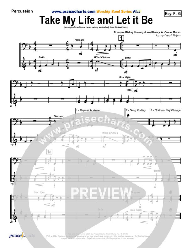 Take My Life And Let It Be Percussion Sheet Music PDF (PraiseCharts / Traditional Hymn)
