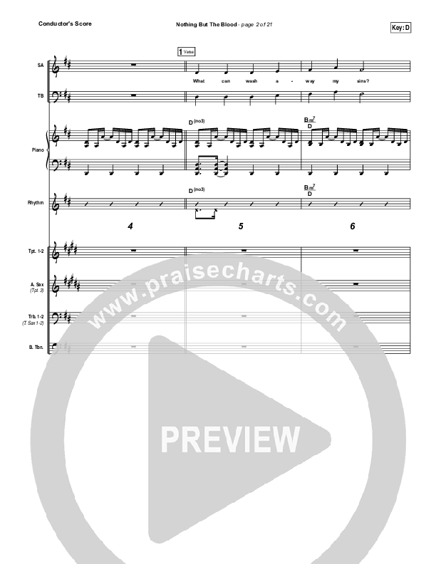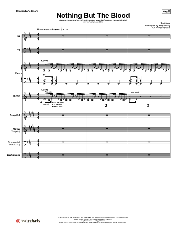 Download the Orchestration for Nothing But The Blood by Andy Cherry, from the album Jesus Firm Foundation - Hymns of Worship. This song was arranged by Daniel Galbraith in the key of C, D, F.