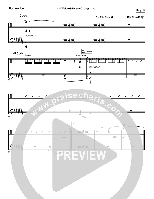 Download the percussion sheet music for It Is Well (Oh My Soul) by Brandon Heath, from the album Jesus Firm Foundation - Hymns of Worship. This song was arranged by Daniel Galbraith in the key of B, Bb.