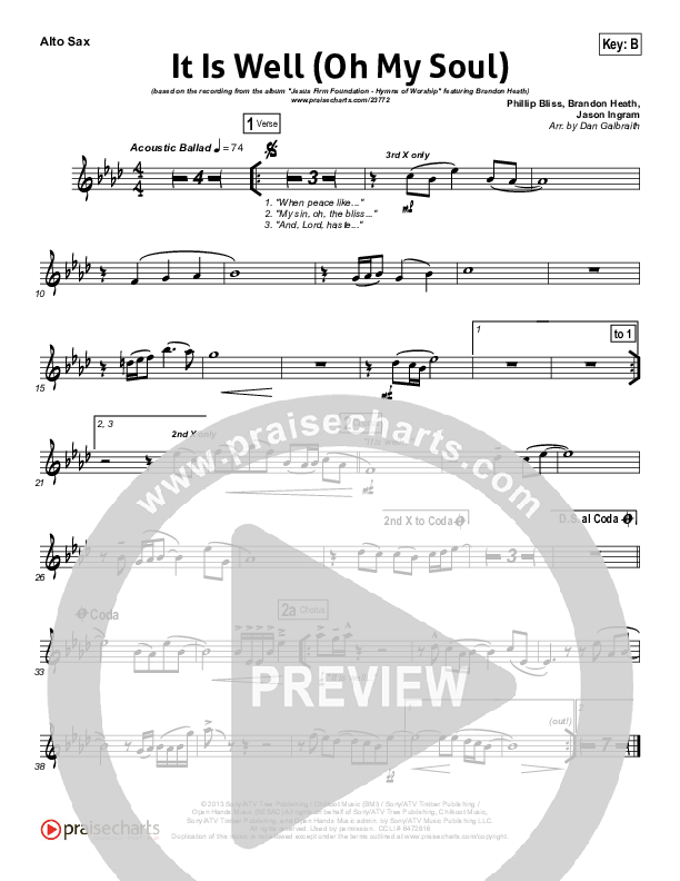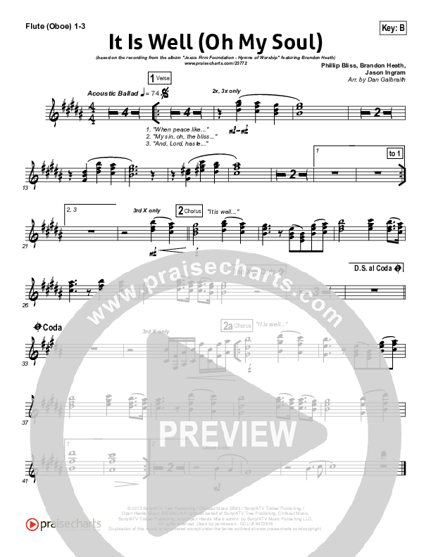 Download the Orchestration wind parts for It Is Well (Oh My Soul) by Brandon Heath, from the album Jesus Firm Foundation - Hymns of Worship. This song was arranged by Daniel Galbraith in the key of B, Bb.