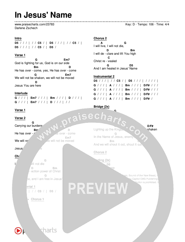 In Jesus' Name Chords PDF (Darlene Zschech)