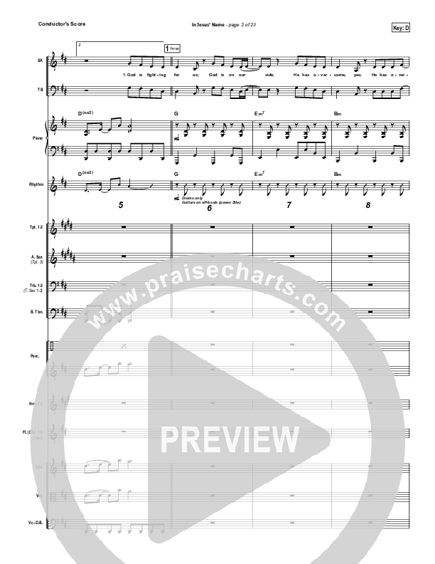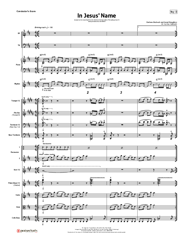 Download the Orchestration for In Jesus' Name by Darlene Zschech, from the album Revealing Jesus. This song was arranged by Daniel Galbraith in the key of C, D.