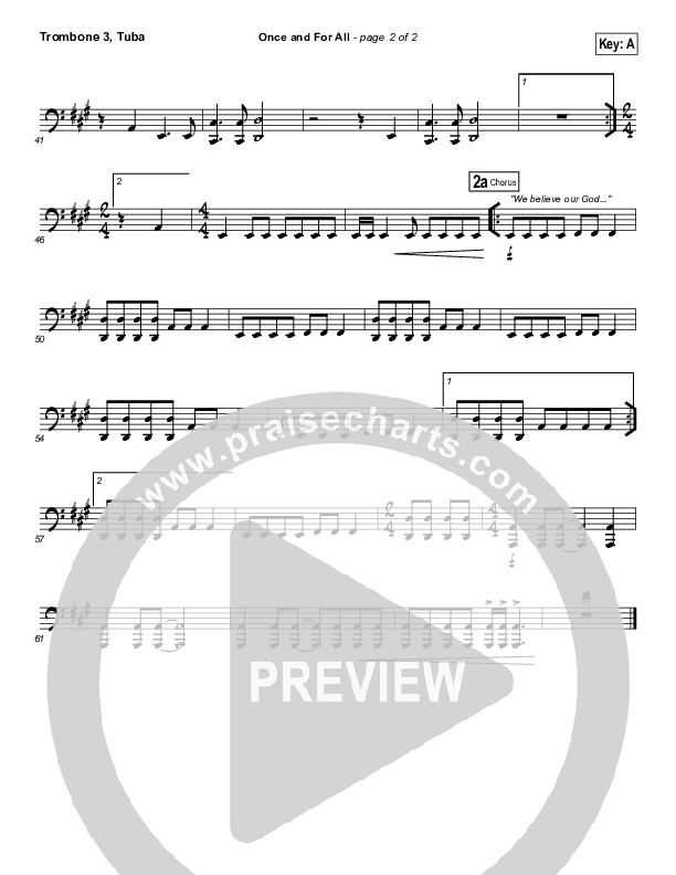 Download the Trombone 3/Tuba sheet music for Once And For All by Chris Tomlin / Passion, from the album Let The Future Begin. This song was arranged by Daniel Galbraith in the key of A, G.