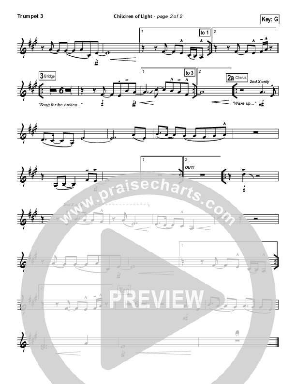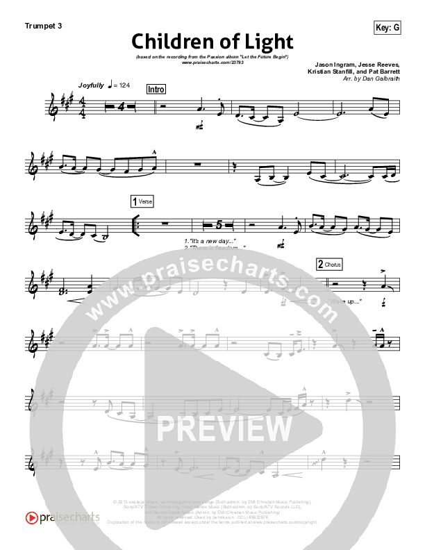 Download the Trumpet 3 sheet music for Children Of Light by Kristian Stanfill / Passion, from the album Let The Future Begin. This song was arranged by Daniel Galbraith in the key of F, G.