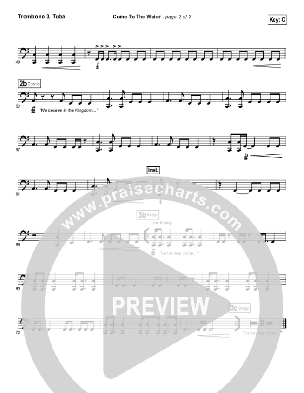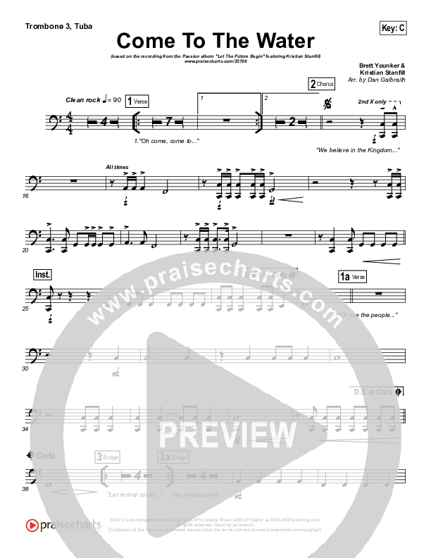 Download the Trombone 3/Tuba sheet music for Come To The Water by Kristian Stanfill / Passion, from the album Let The Future Begin. This song was arranged by Daniel Galbraith in the key of Bb, C.