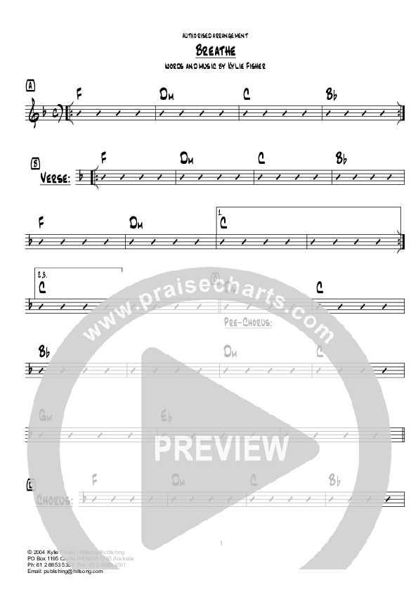 Download the PDF Chord Charts for Breathe by Hillsong Kids, from the album Jesus Is My Superhero. This song was arranged by Hillsong Charts in the key of F.