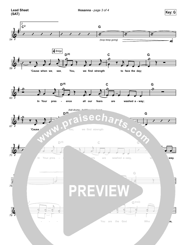Download the Orchestration for Hosanna (Praise Is Rising) by Paul Baloche, from the album A Greater Song. This song was arranged by Daniel Galbraith in the key of F, G.