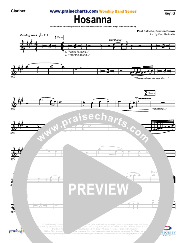 Download the Orchestration wind parts for Hosanna (Praise Is Rising) by Paul Baloche, from the album A Greater Song. This song was arranged by Daniel Galbraith in the key of F, G.