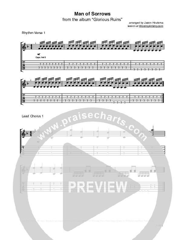 Download the Guitar Tab for Man Of Sorrows by Hillsong Worship, from the album Glorious Ruins. This song was arranged by Daniel Galbraith in the key of C, D, Db, E, Eb, F.