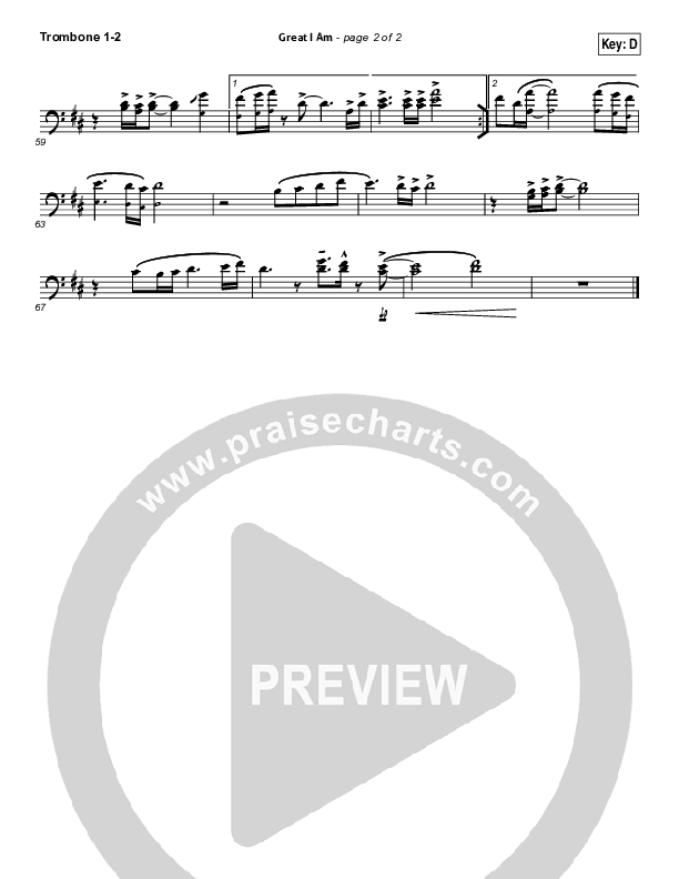 Download the Trombone 1,2 sheet music for Great I Am by Phillips Craig & Dean, from the album Breathe In. This song was arranged by Erik Foster / Daniel Galbraith in the key of C, D.