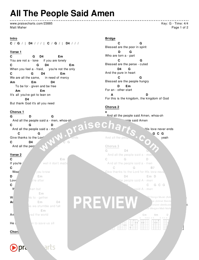 All The People Said Amen Chords PDF (Matt Maher)