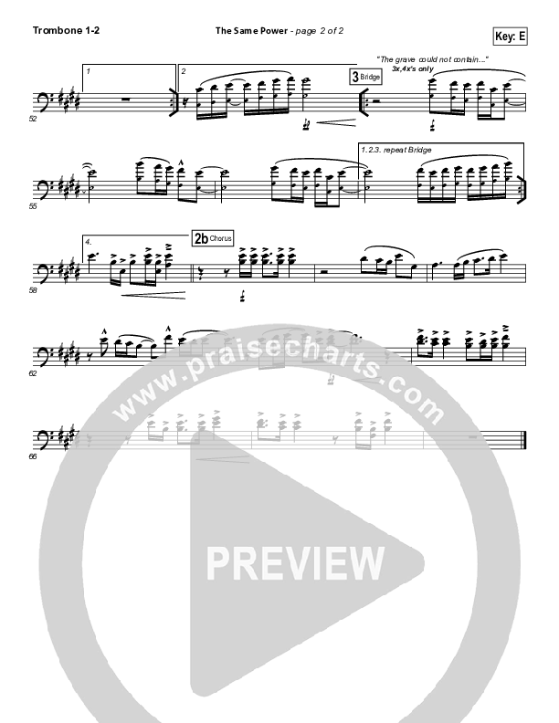 Download the Trombone 1,2 sheet music for The Same Power by Ben Cantelon / Worship Central, from the album Let It Be Known. This song was arranged by Daniel Galbraith in the key of D, Db, E.