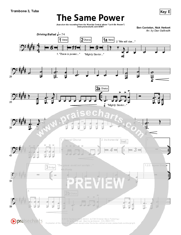 Download the Trombone 3/Tuba sheet music for The Same Power by Ben Cantelon / Worship Central, from the album Let It Be Known. This song was arranged by Daniel Galbraith in the key of D, Db, E.