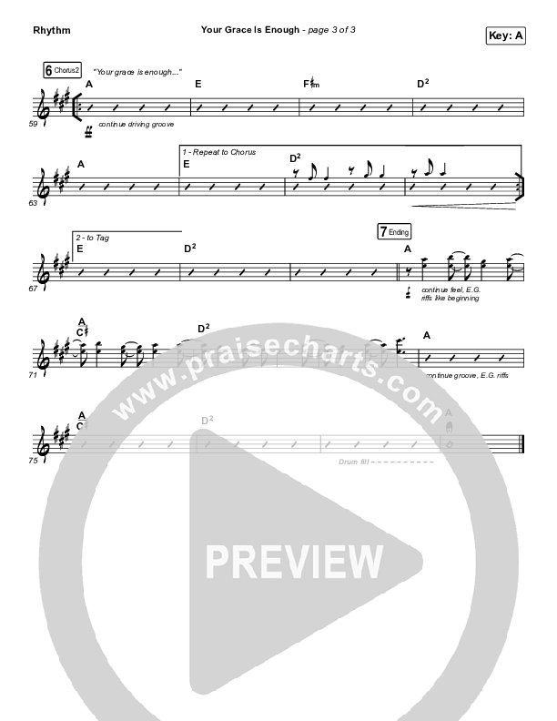 Download the Rhythm Chart for Your Grace Is Enough by Chris Tomlin, from the album Arriving. This song was arranged by John Wasson in the key of A, Ab, F, G.