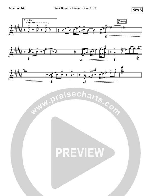 Download the trumpet sheet music for Your Grace Is Enough by Chris Tomlin, from the album Arriving. This song was arranged by John Wasson in the key of A, Ab, F, G.