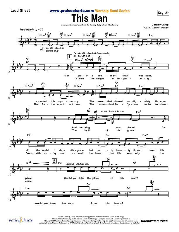 Download the Orchestration for This Man by Jeremy Camp, from the album Live Unplugged. This song was arranged by Charlie Sinclair in the key of Ab, G.