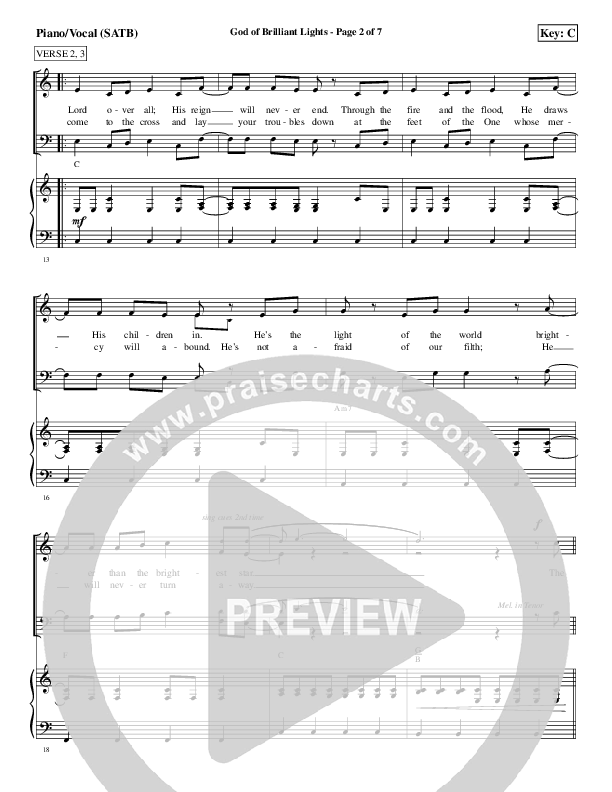 Download the sheet music for God Of Brilliant Lights by Aaron Shust, from the album Morning Rises. This song was arranged by Worship Together in the key of Bb, C.