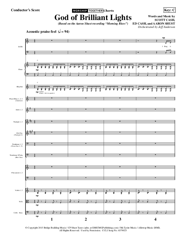 Download the Orchestration for God Of Brilliant Lights by Aaron Shust, from the album Morning Rises. This song was arranged by Worship Together in the key of Bb, C.